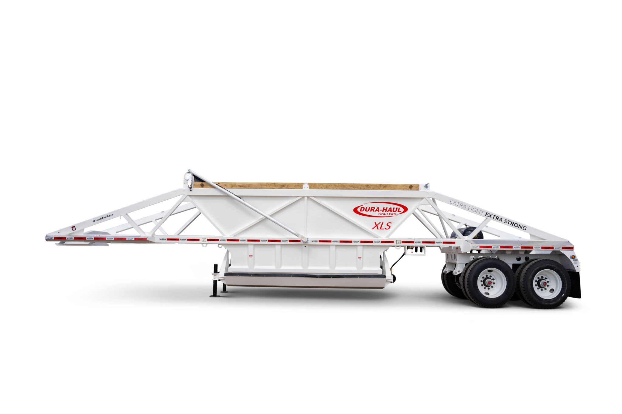 The XLT full-sided 40ft Belly Dump trailer comes with optional bolt-on front and back slope sheets including a ladder. Our sides are completely welded, not stitch welded like others in the market place making the Dura-Haul XLT a much stronger frame while maintaining its lightweight category class. With its low center of gravity, it is also faster and easier to load. It comes standard with Aluminum fenders front and rear that also contributes to the XLT's lighter weight.